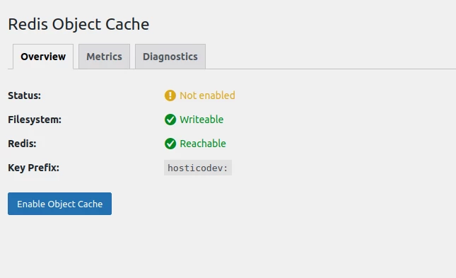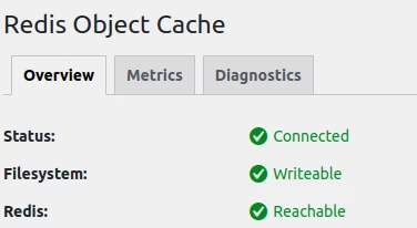 ◦ If all three statuses are positive, then Redis Object Cache has been successfully installed.
