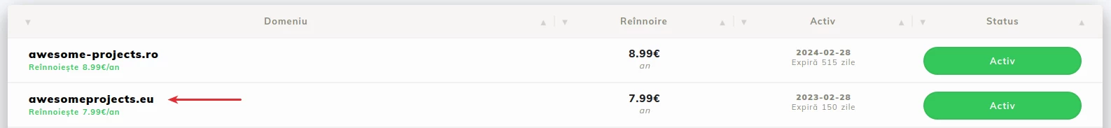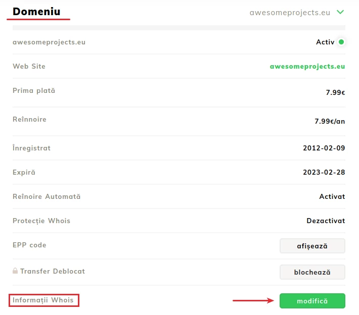 After accessing the domain, in the newly opened page we will access the section Domain;- In this section, the WHOIS Information section is of interest